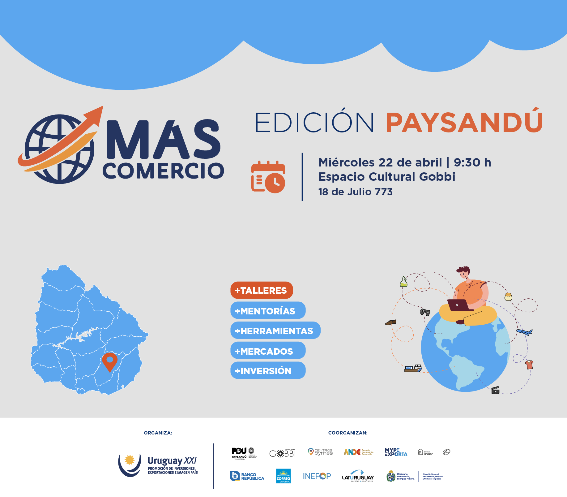 Si tenés un emprendimiento o empresa en Paysandú, participá de Más Comercio, el taller sin costo de Uruguay XXI, la agencia gubernamental de promoción de inversiones, exportaciones e imagen país.
