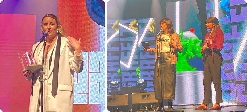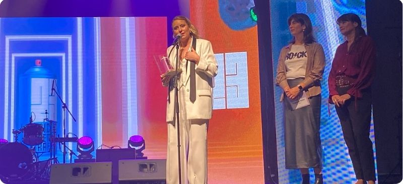 “Que yo esté aquí, reciba el premio, sea mi cara la de la foto, no quiere decir que no sea un trabajo super colectivo,” dijo ante el público. “Ser solista está buenísimo cuando la espalda te la cuidan las personas que te quieren y que uno quiere también”, agradeció al recibir su premio.
